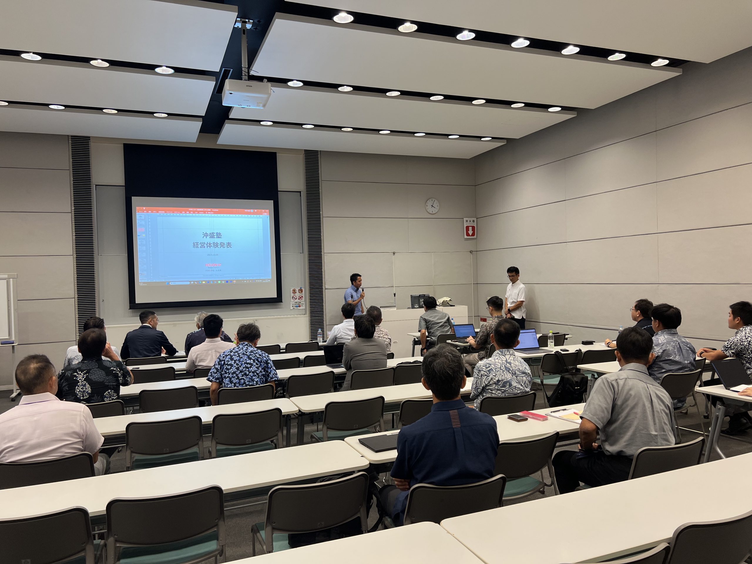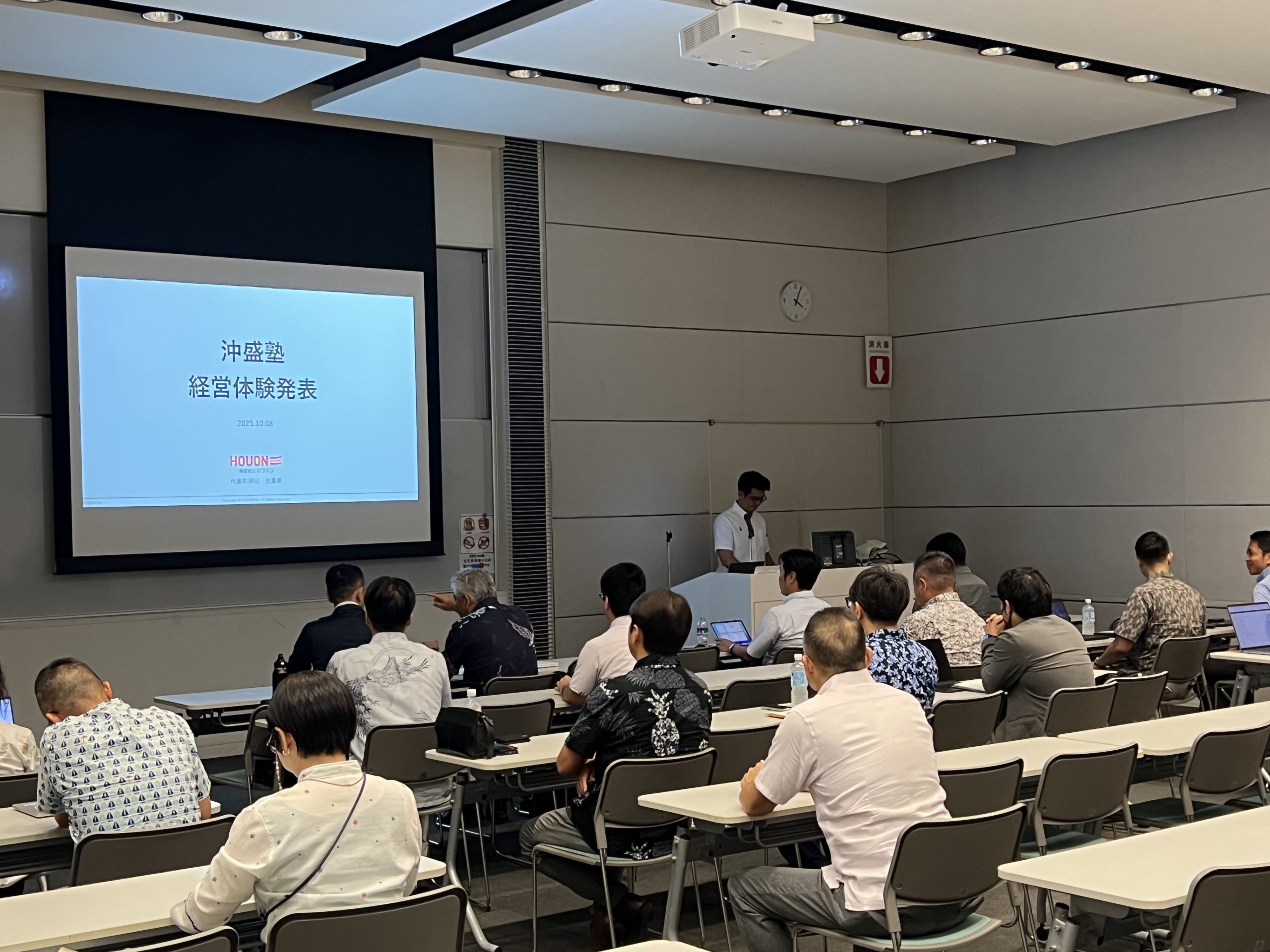 【10/8】経営体験発表会 公開日:2025年10月9日 株式会社ホウオン比嘉眞塾生と株式会社イバノ平良幸広塾生による稲盛経営哲学実践の経営体験発表会を県立博物館講座室とZoomの両方を利用して開催しました。 沖盛塾では稲盛哲学を共に学び実践する、新たな塾生を募集しています。くわしくは「沖盛塾とは」・「入塾案内」をご覧ください。